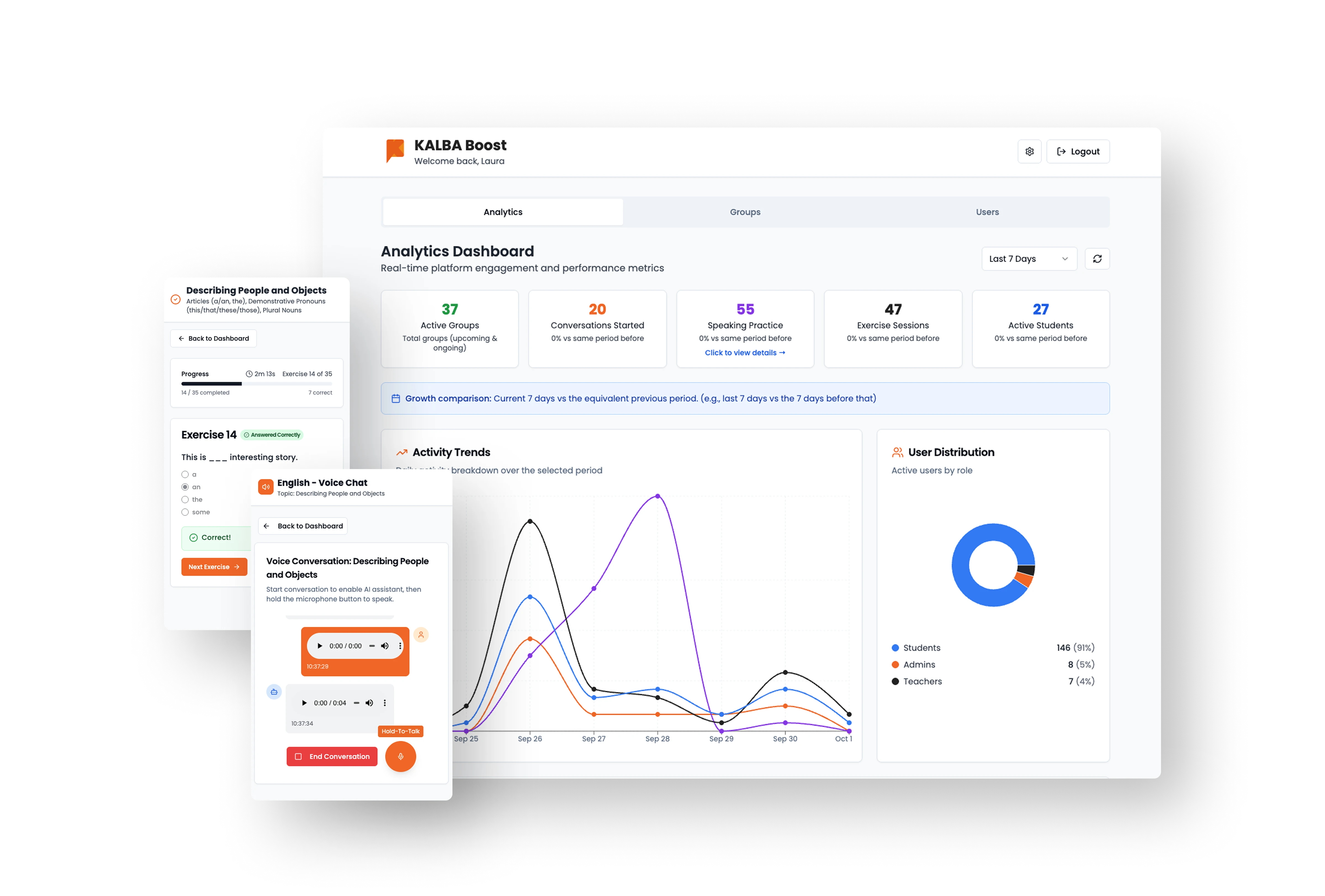 Kalba.lt needed adaptive language learning platform. We built multi-language software with AI tutor, personalized quizzes, and adaptive testing based on learner's pace and interests.