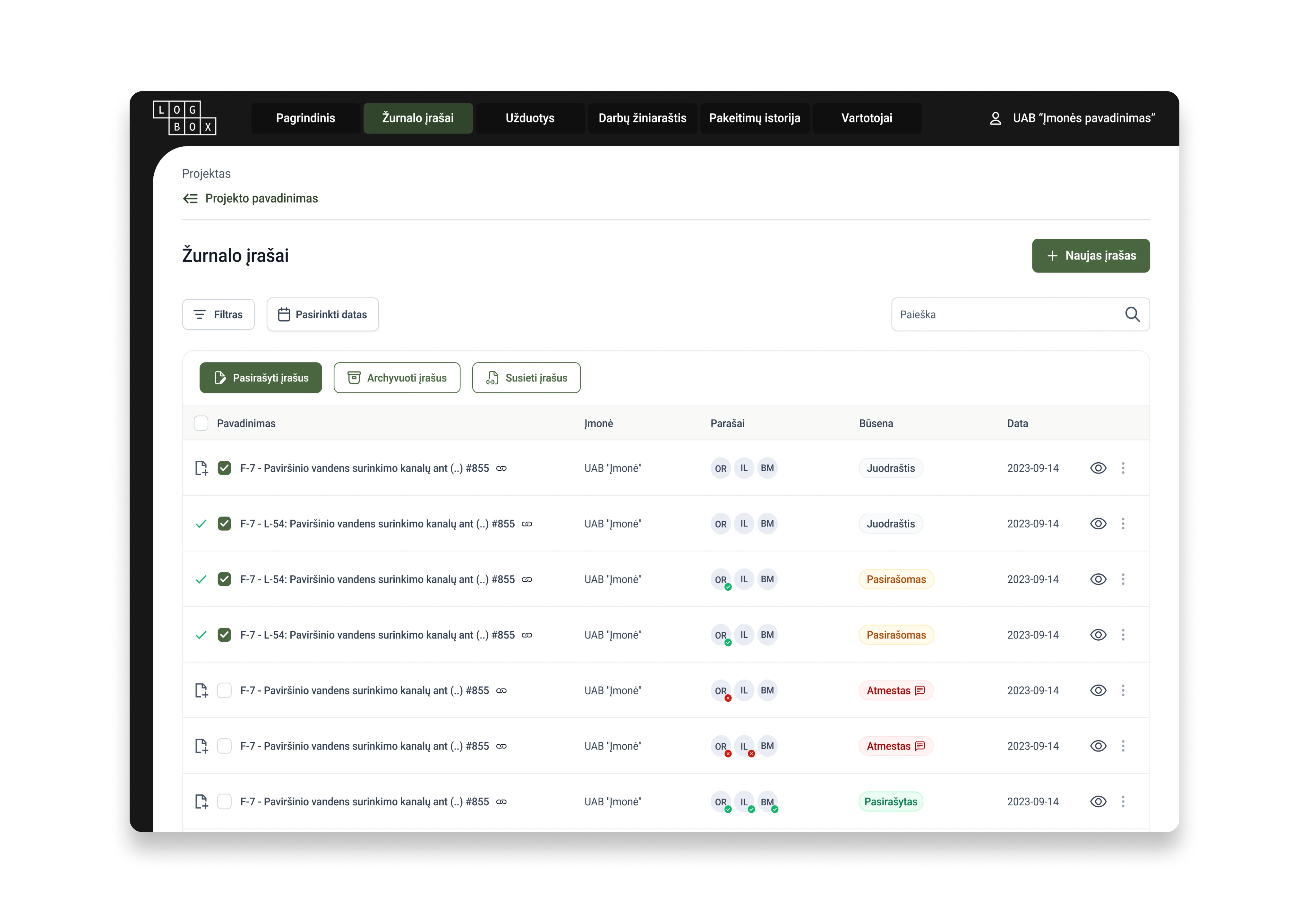 Supaprastinta statybos dokumentacija naudojant elektroninę registravimo platformą. Lengvai tvarkykite žurnalo įrašus ir formų pateikimus sklandžiam projekto valdymui.